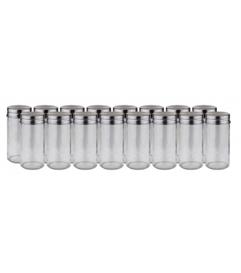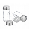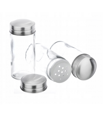 Pojemniki wykonane ze szkła hartowanego (przezroczyste), nakrętki wykonane ze STALI NIERDZEWNEJ INOX